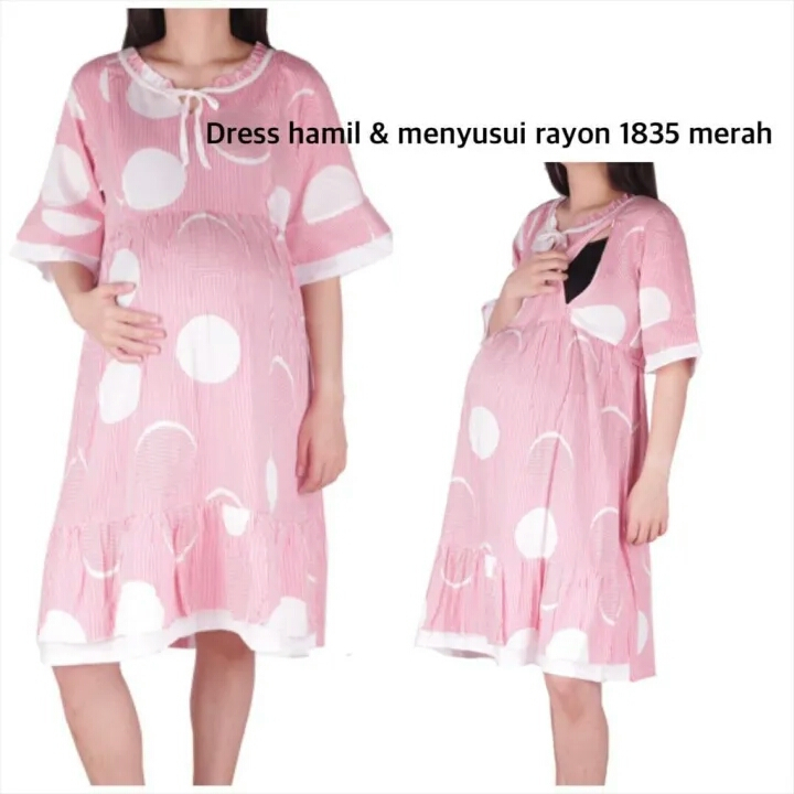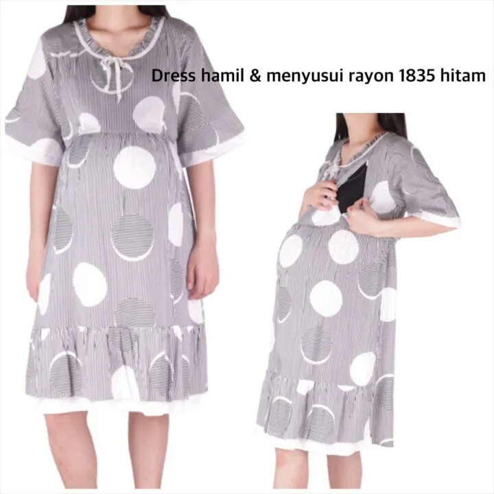 Dress Ibu hamil nyaman dan modis cocok untuk yg sedang hamil dan bekerja serta menyusui berbahan crepe polkadot sangat nyaman dan adem Terdapat resleting kiri kanan untuk menyusui Cocok dipakai untuk kerja, maupun untuk santai Lingkar dada 110cm Panjang 100cm Allsize dan bertali belakang