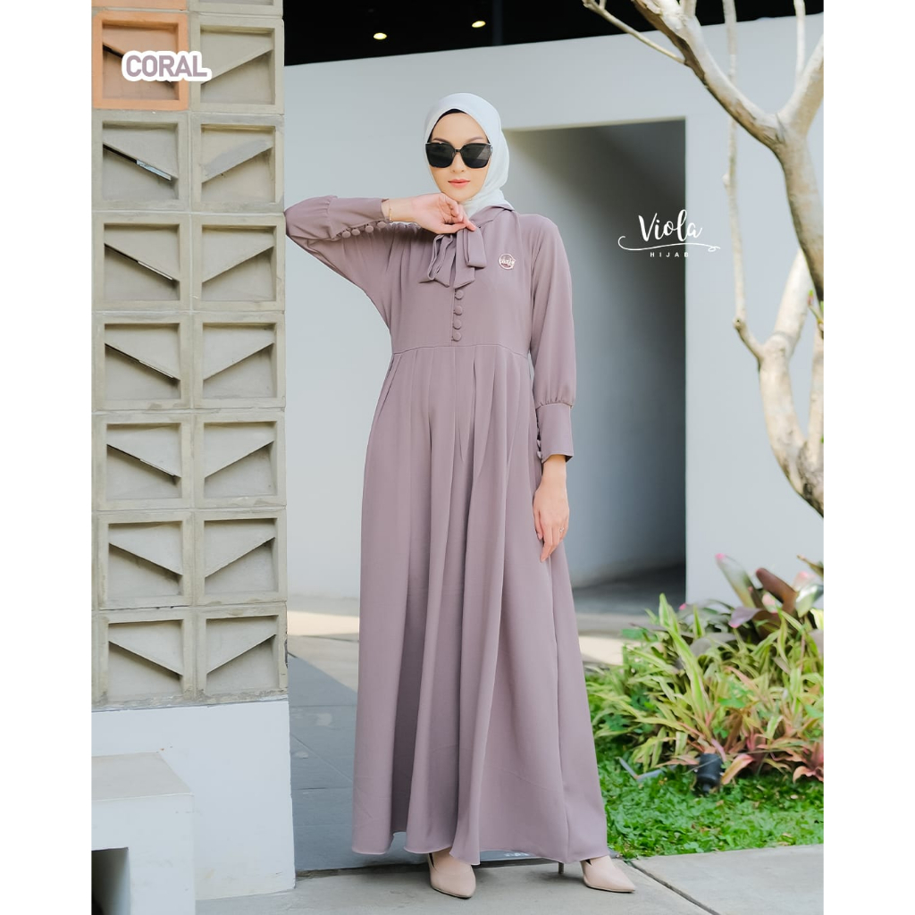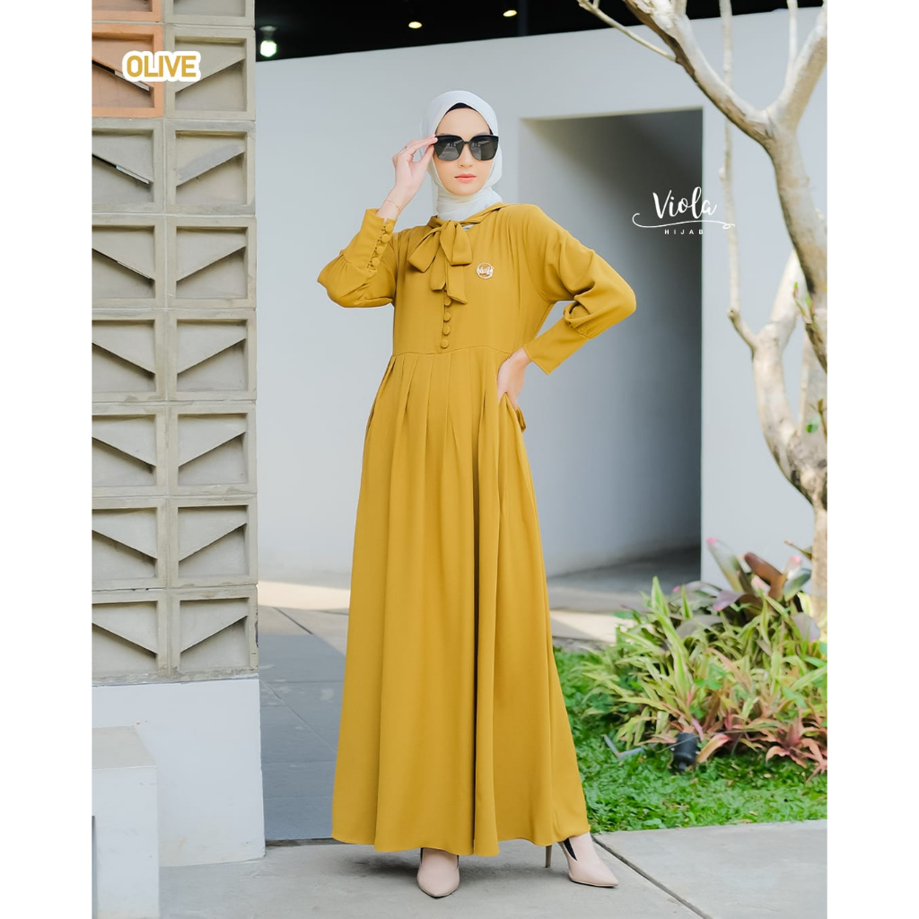 Design ori by viola hijab Gamis only Matt : ity crepe Ld.110 Pb.140 kerah butterfly lengan kancing model deret kancing bukaan depan bawahan model rempel