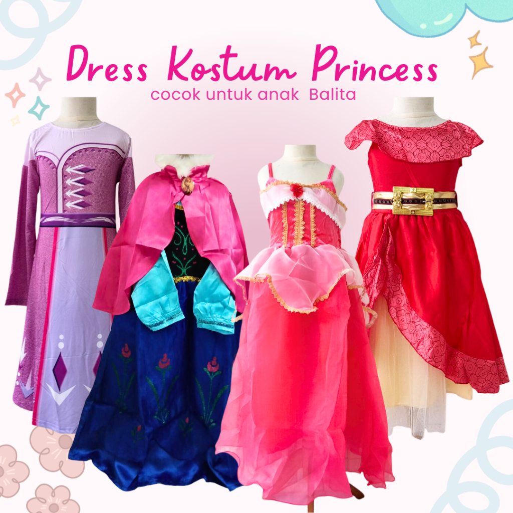 Detail Dress Kostum Anak Karakter Princess Baju lebaran Pesta Kondangan Balita