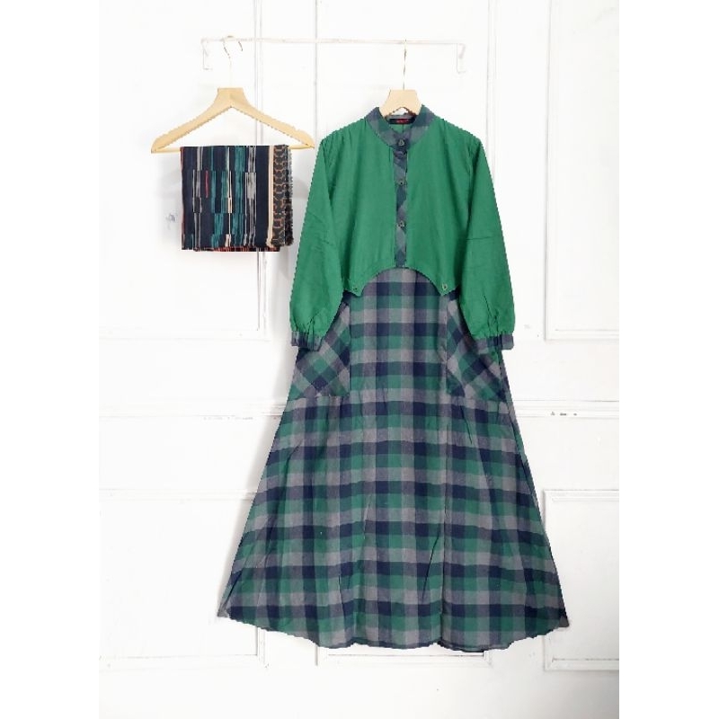 Dress Kotak Shaqueenara//Gamis Katun Mix Linene //Gamis Mix Kotak Rempel Wanita