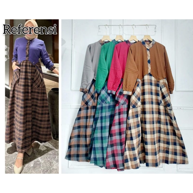 Fashion Muslim > Fashion Muslim Lainnya > Dress Kotak Shaqueenara//Gamis Katun Mix Linene //Gamis Mix Kotak Rempel Wanita