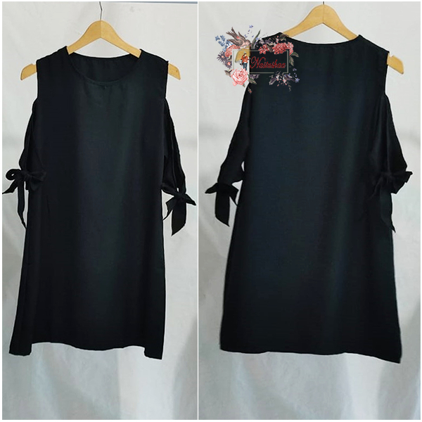 DETAIL: •Dress midi lengan tali •Model cold shoulder •Warna Hitam