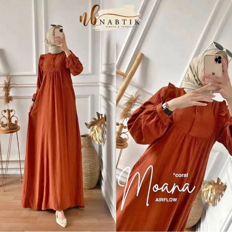 Gamis Wanita Terbaru Moana Dress dengan bahan Crinkle yang lagi ngehits dan kekinian, bahan adem anti kusut tanpa setrika, dipake sehari-hari ataupun acara resmi bisaaa bangeeet ~