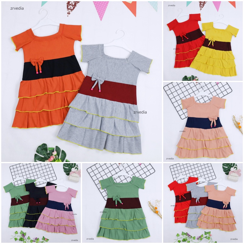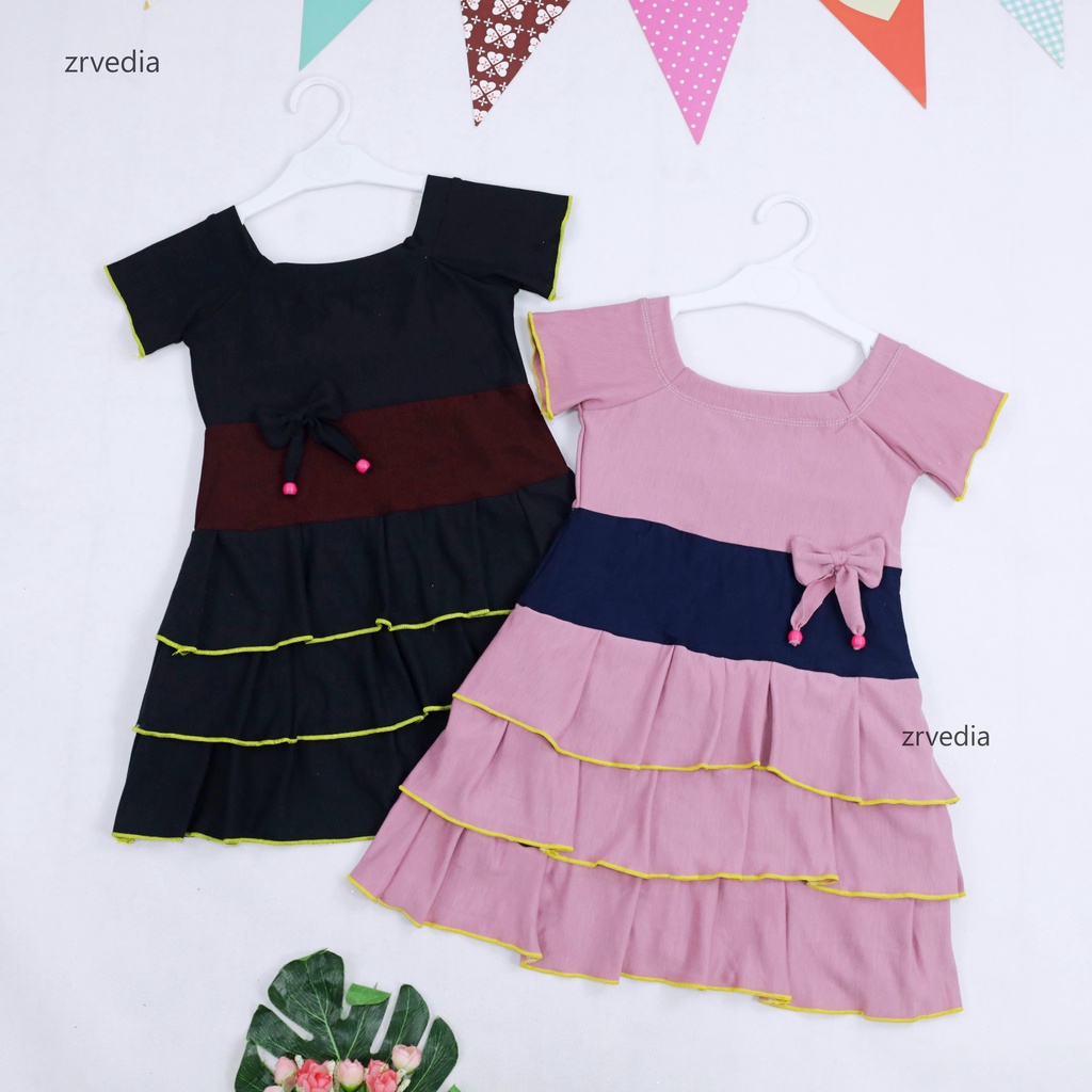 Dress Nayla uk 4-5 th / Dress Polos Lengan Balita Anak Perempuan Dres Import Baju Pesta Harian Motif Murah