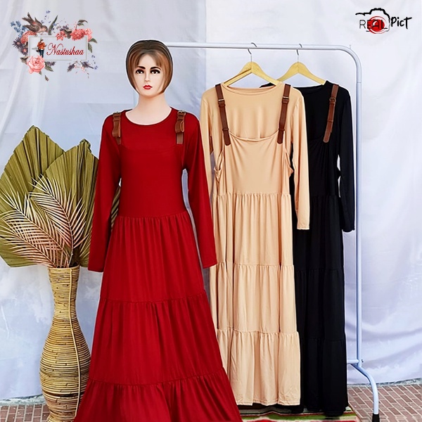 Detail Dress Overall – Overall Kekinian - Dress Wanita Ruffle - Inner Dress - Baju Gamis Polos - Maresha Set 2in1 - Fashion Muslim Inner Warna Senada Terbaru