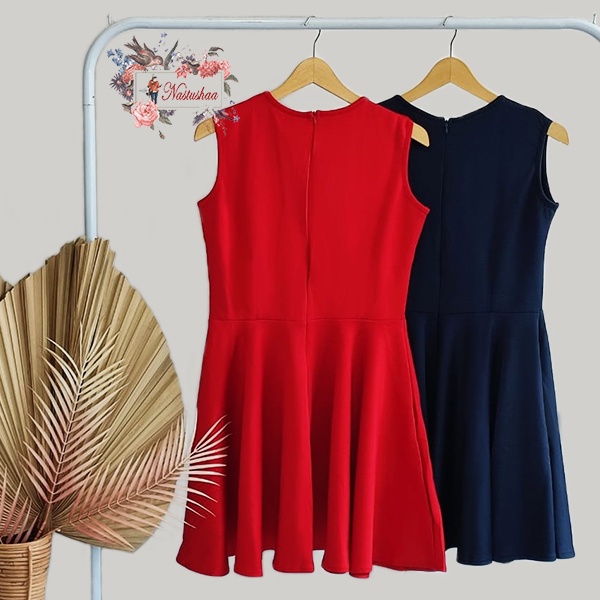DETAIL: •Dress Tanpa Lengan •Resleting Belakang •Model Fit & Flare