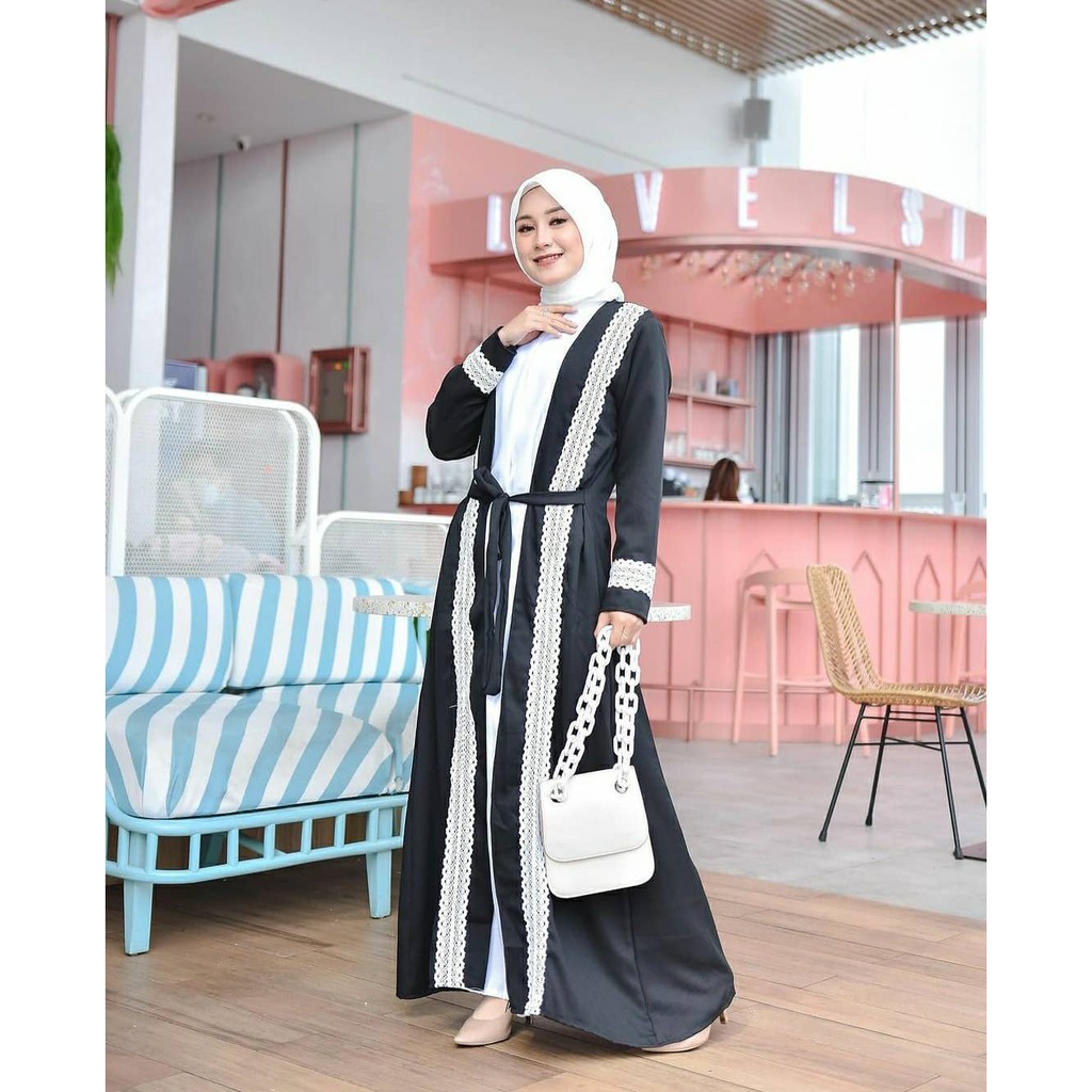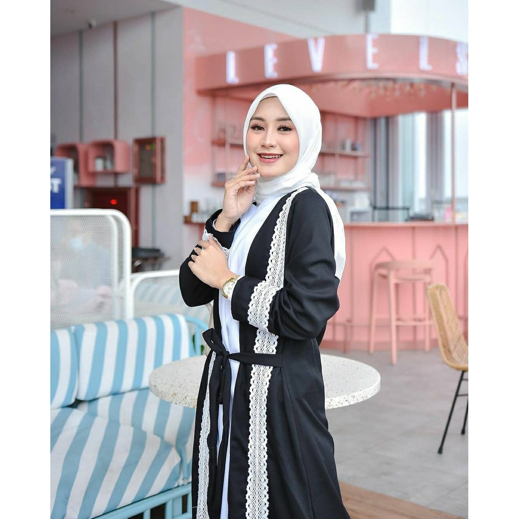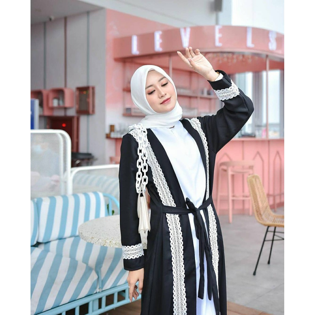 โ๏ธ MATERIAL BAHAN Bahan : moscrape mix renda Ukuran : ALL SIZE FIT TO L LD : LD 104 PJG : 135 Warna : Kombinasi white dan black Berat : 480gram