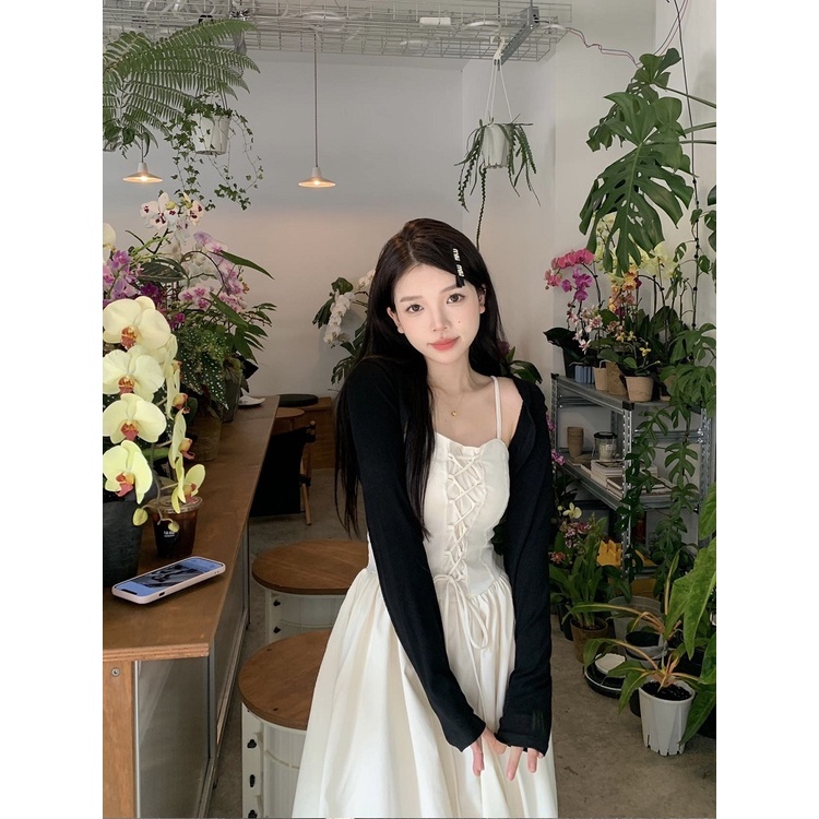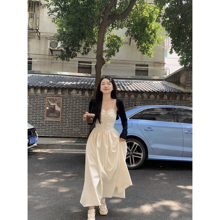 Pakaian Wanita > Denim > Dress Denim > ▥dress summer beach Niche rasa desain a-line gaun Perancis suspender rok wanita musim panas angin lembut pinggang rok panjang rok putih