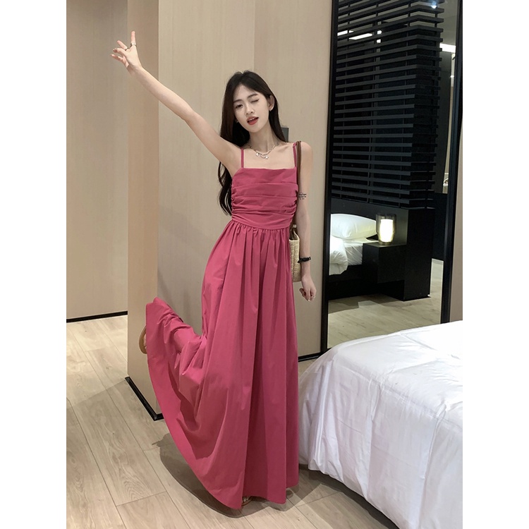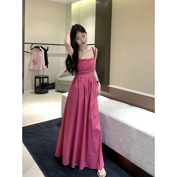 Detail ♝dress summer beach rose red suspender dress female summer 2023 niche tube top skirt design sense temperamen pinggang waist a-line long skirt