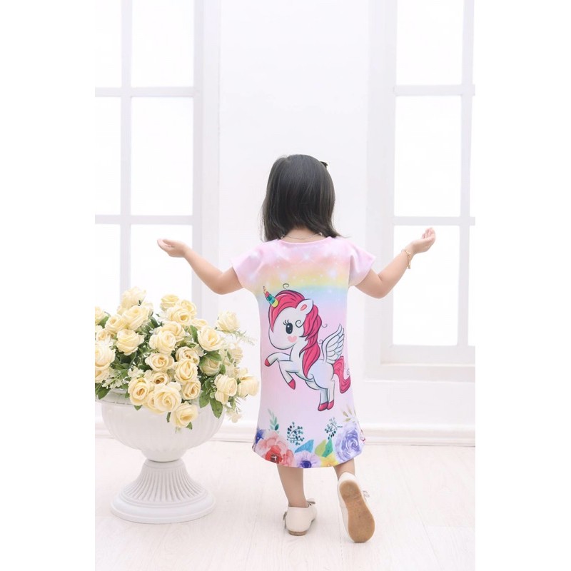 Detail DRESS UNICORN, DRESS SCUBA PRINTING, HOMEDRESS,BAJU ANAK CEWEK,BAJU ANAK LUCU