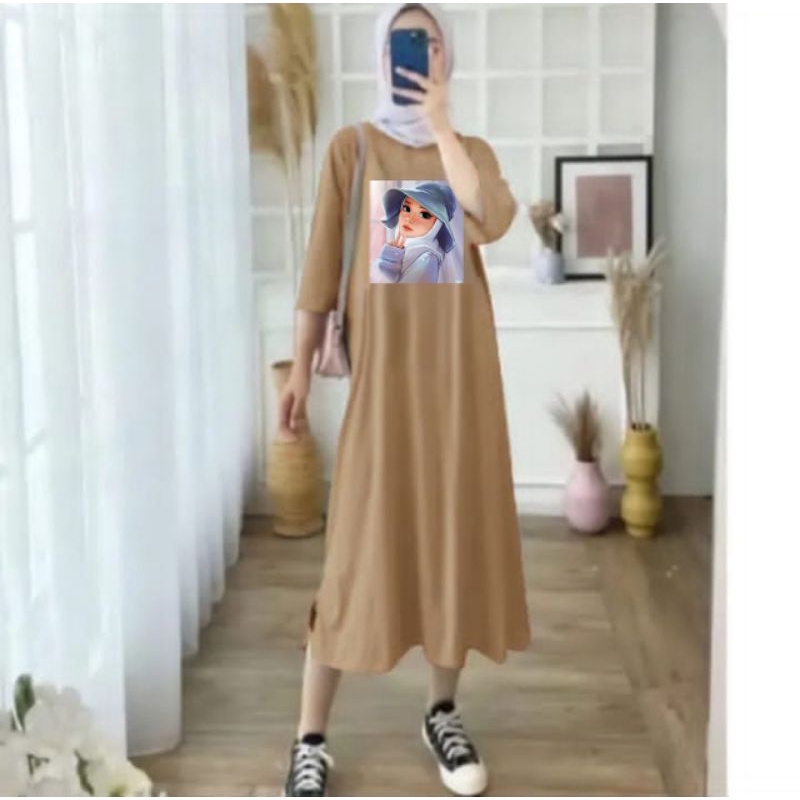 DRESS WANITA OVERSIZE HIJAB TOPI LENGAN 3\4 BAHAN BABYTERY SPANDEK BAHAN TEBAL BAHAN ADEM TIDAK NERAWANG