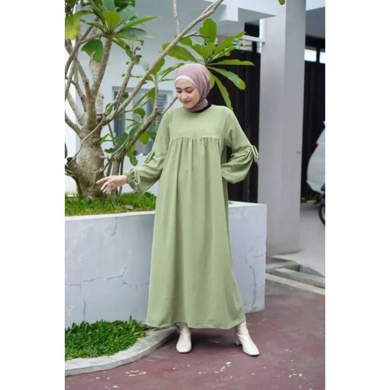 - BUSUI FRIENDLY (kancing aktif di bagian depan) - Lengan Balon terdapat aksen tali sehingga terlihat lebih stylish - Cutting lebaar dengan model rempelan di bagian pinggang Dress - Lengan pakai karet sehingga nyaman digunakan