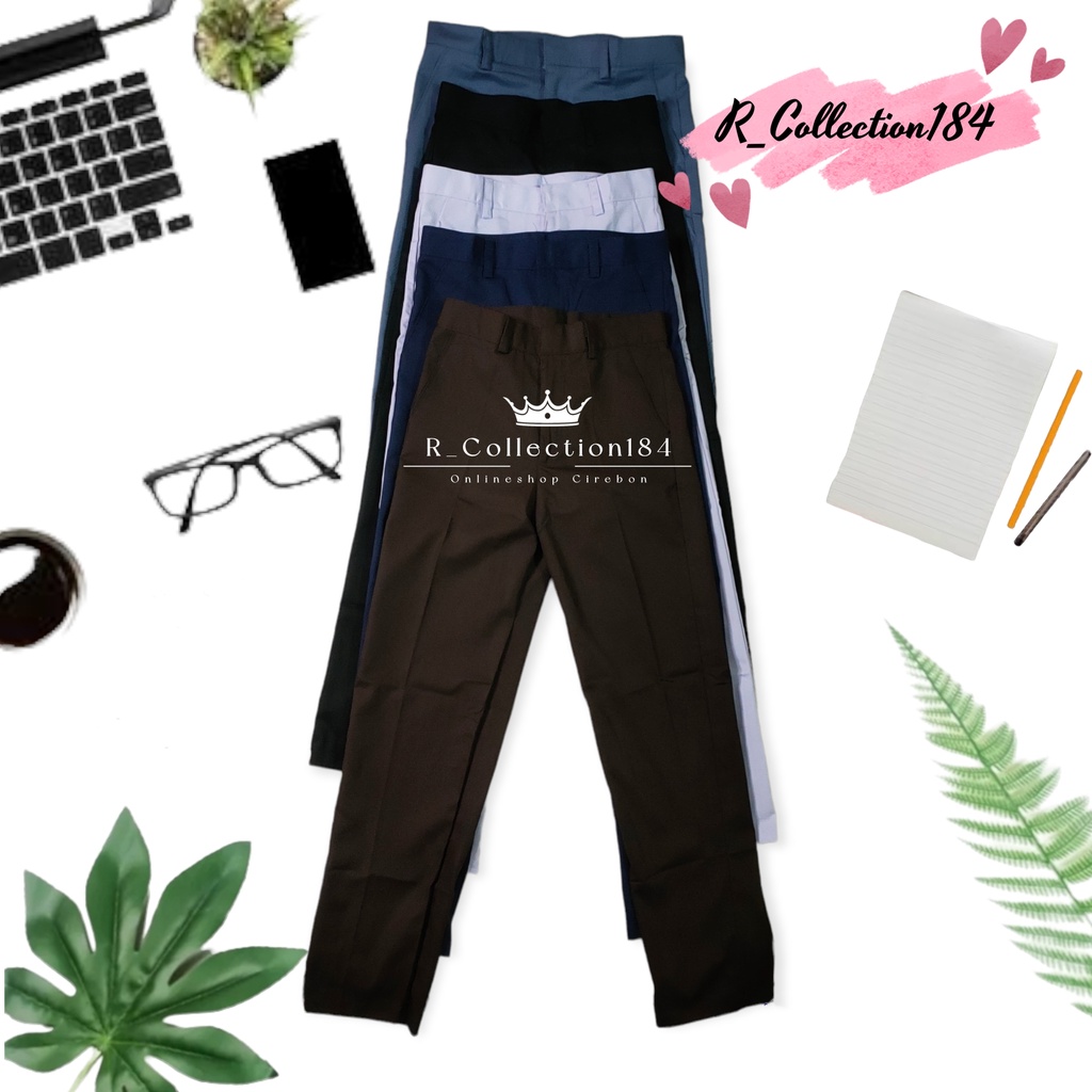 - Bahan / Kain Drill (Tebal) - Celana Panjang Reselting Depan - Saku Samping Kanan Kiri - Saku Kantong Tutup Belakang - NON KARET (Tanpa Karet) - Model Formal - Tidak Luntur