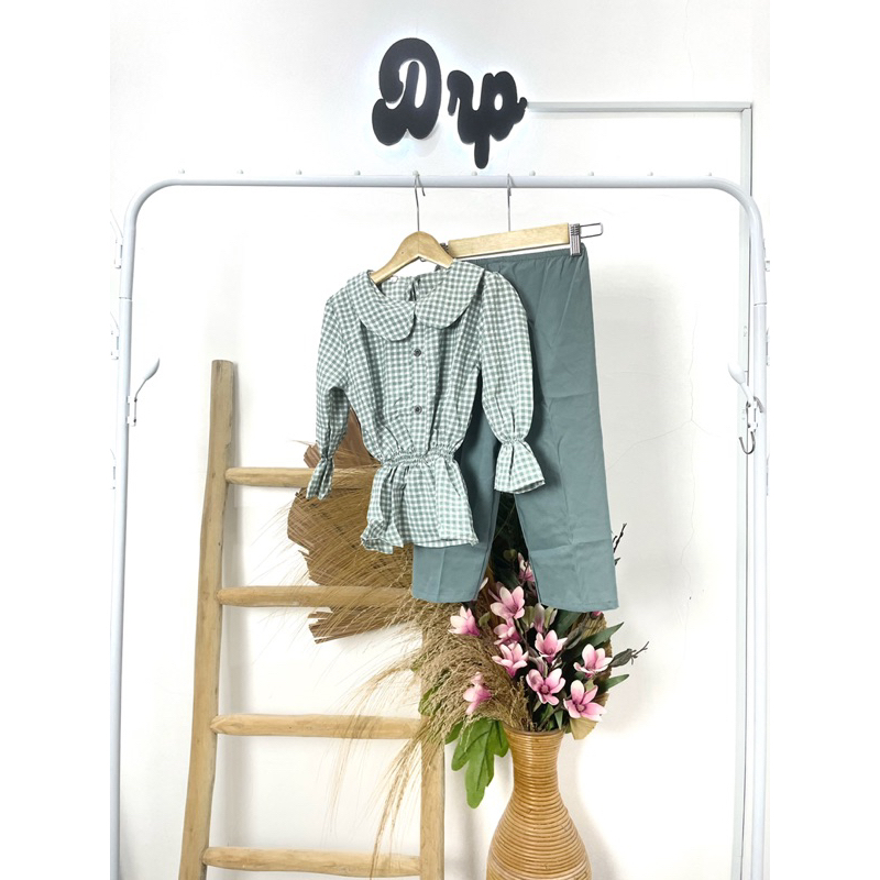 Bahan : Katun Jepang Premium kombinasi crinkle (Bahan adem, nyaman, jahitan rapi, ada tali pinggang, pergelangan karet) — Size Chart KINARA ONE SET