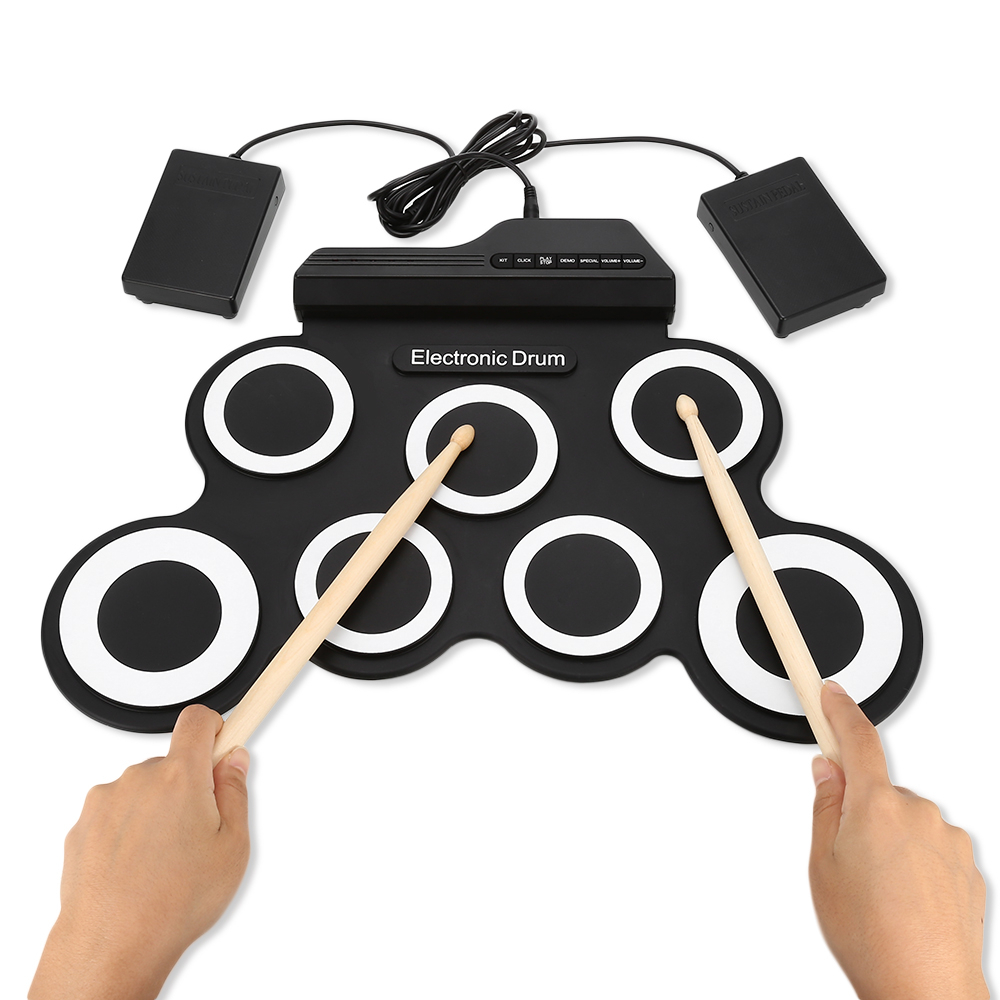 Detail Drum Elektronik Portable 3002 Digital Drum 7 Drum Pad Silicone Drum Pad Kit - Hitam
