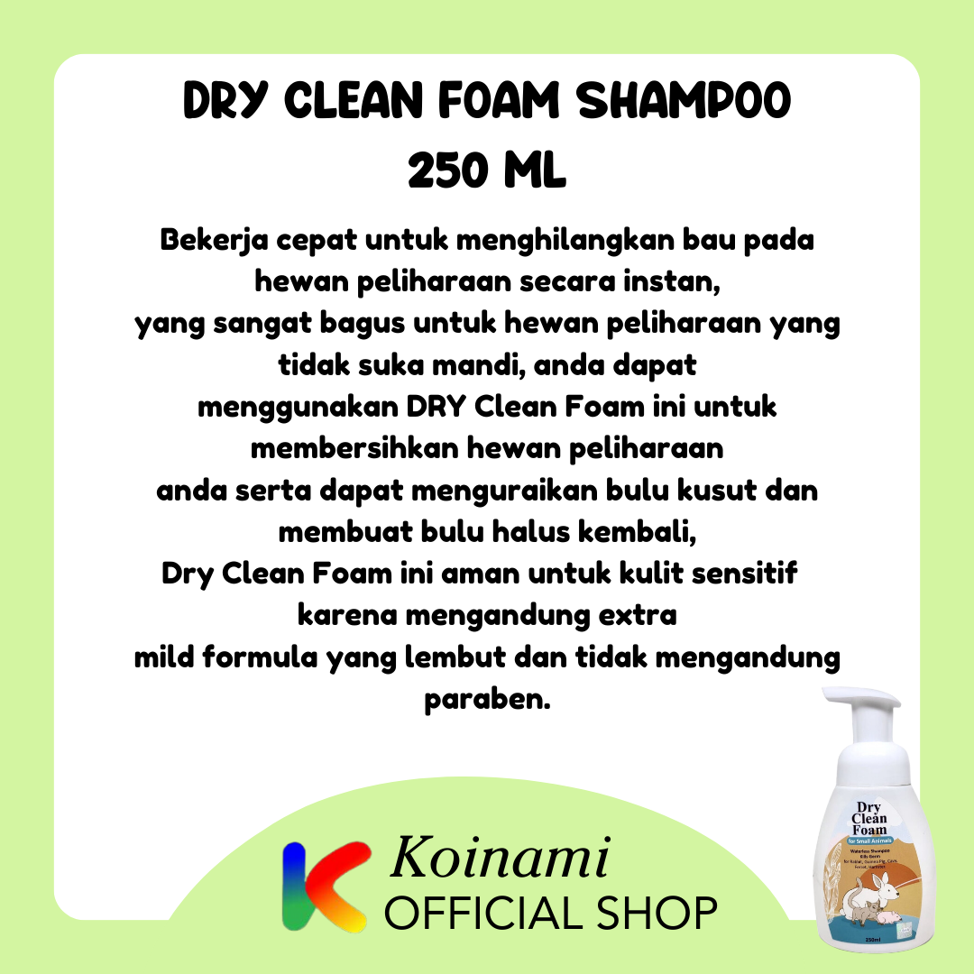 Bekerja cepat untuk menghilangkan bau pada hewan peliharaan secara instan, yang sangat bagus untuk hewan peliharaan yang tidak suka mandi, anda dapat menggunakan DRY Clean Foam ini untuk membersihkan hewan peliharaan anda serta dapat menguraikan bulu kusut dan membuat bulu halus kembali, Dry Clean Foam ini aman untuk kulit sensitif karena mengandung extra mild formula yang lembut dan tidak mengandung paraben.