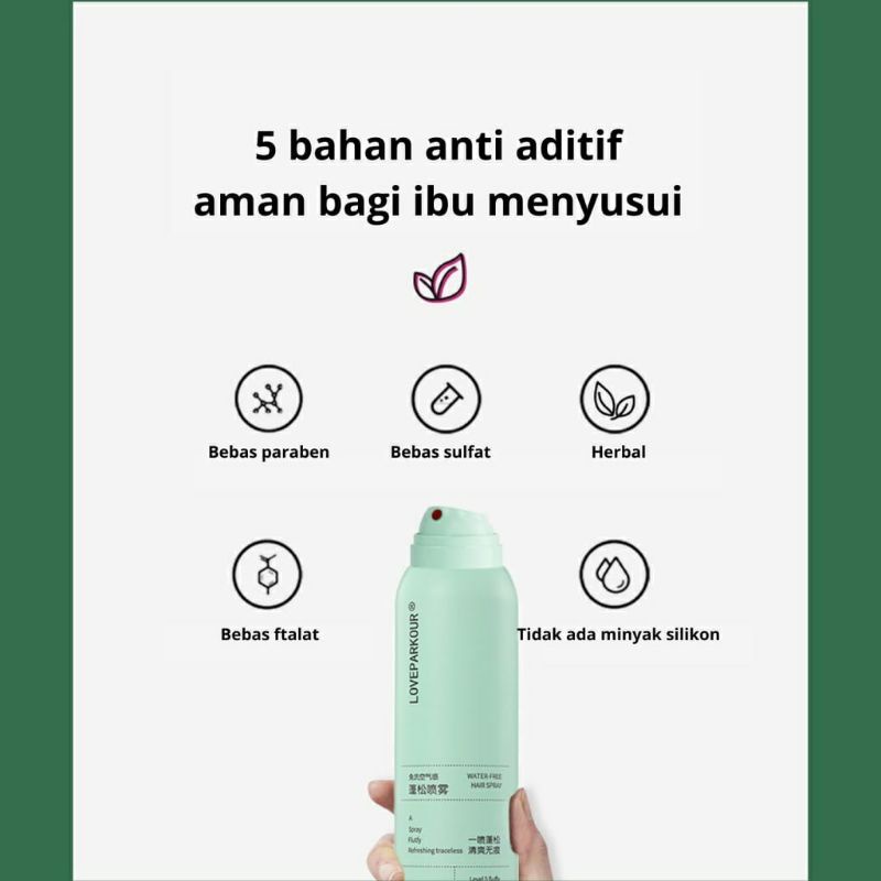 2. Dry shampo lifusha untuk fluffy spray : shampoo kering tanpa bilas dapat menghilangkan minyak dan memberikan volume rambut bagai setelah keramas. Dengan mudah tanpa ribet dapatkan rambut bervolume anda setiap saat,dimana saja,Aman digunakan oleh ibu hamil karena produk kita bebas dari zat zat berbahaya
