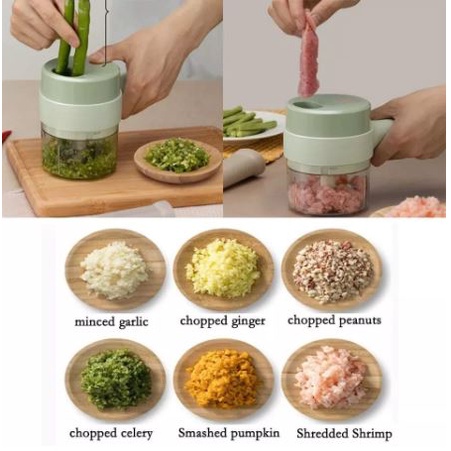 Detail DS SS33 Set Mesin Pemotong Sayuran 4 in 1 Food Chopper Electric Handheld Cooking Hammer USB Charging / Vegetable Cutter Blender Multifungsi