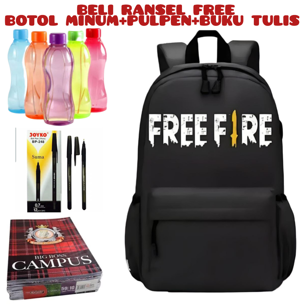 DT_123_Beli 1 Dapat 4 - Tas sekolah free fire anak laki-laki anak perempuan backpack sekolah anak tk sd_Beli Ransel Free Botol Minum+Pulpen+Buku Tulis