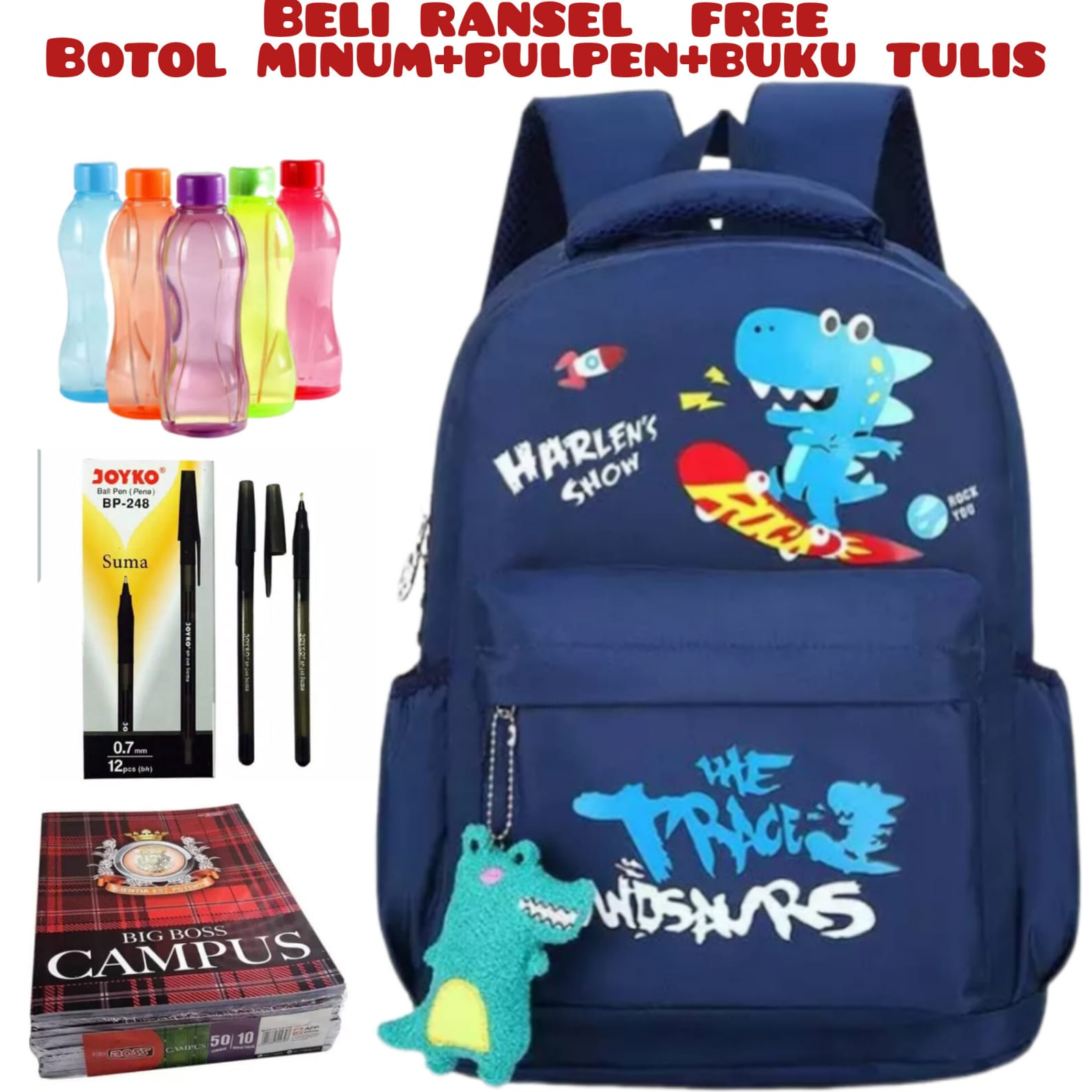 Detail DT_Beli 1 Dapat 4-Tas Anak Sekolah HARLEN`S SHOW Anak Laki-Laki/Perempuan Tas Sekolah Anak TK/SD Laki-Laki Murah Beli Ransel Free Botol Minum+Pulpen+Buku Tulis