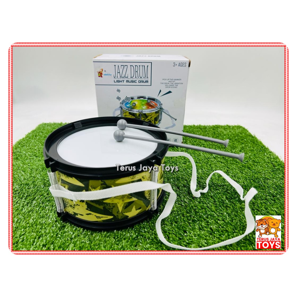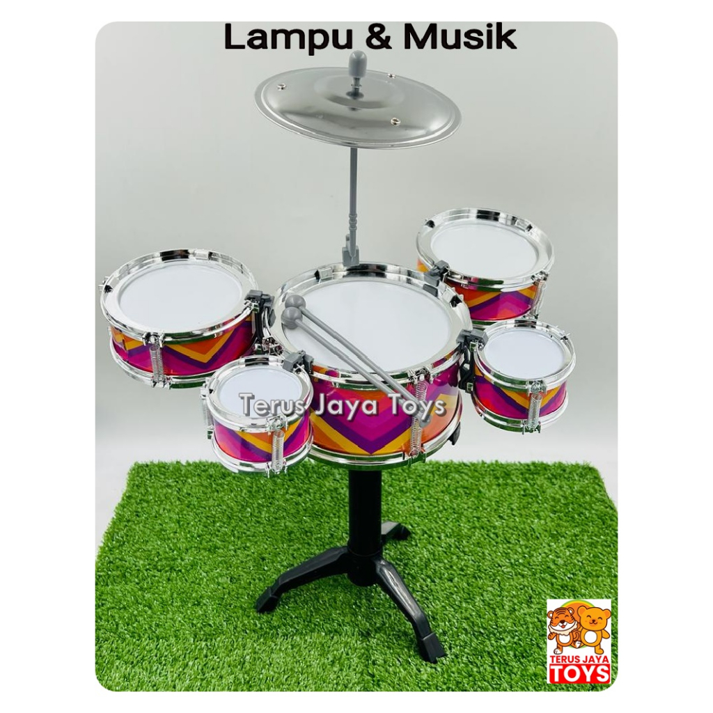Drum 1pcs Box : 16x9x16cm menggunakan baterai AA 3pcs Drum Set Musik : 28x12x18cm Menggunakan baterai AA 3pcs Tidak Termasuk baterai