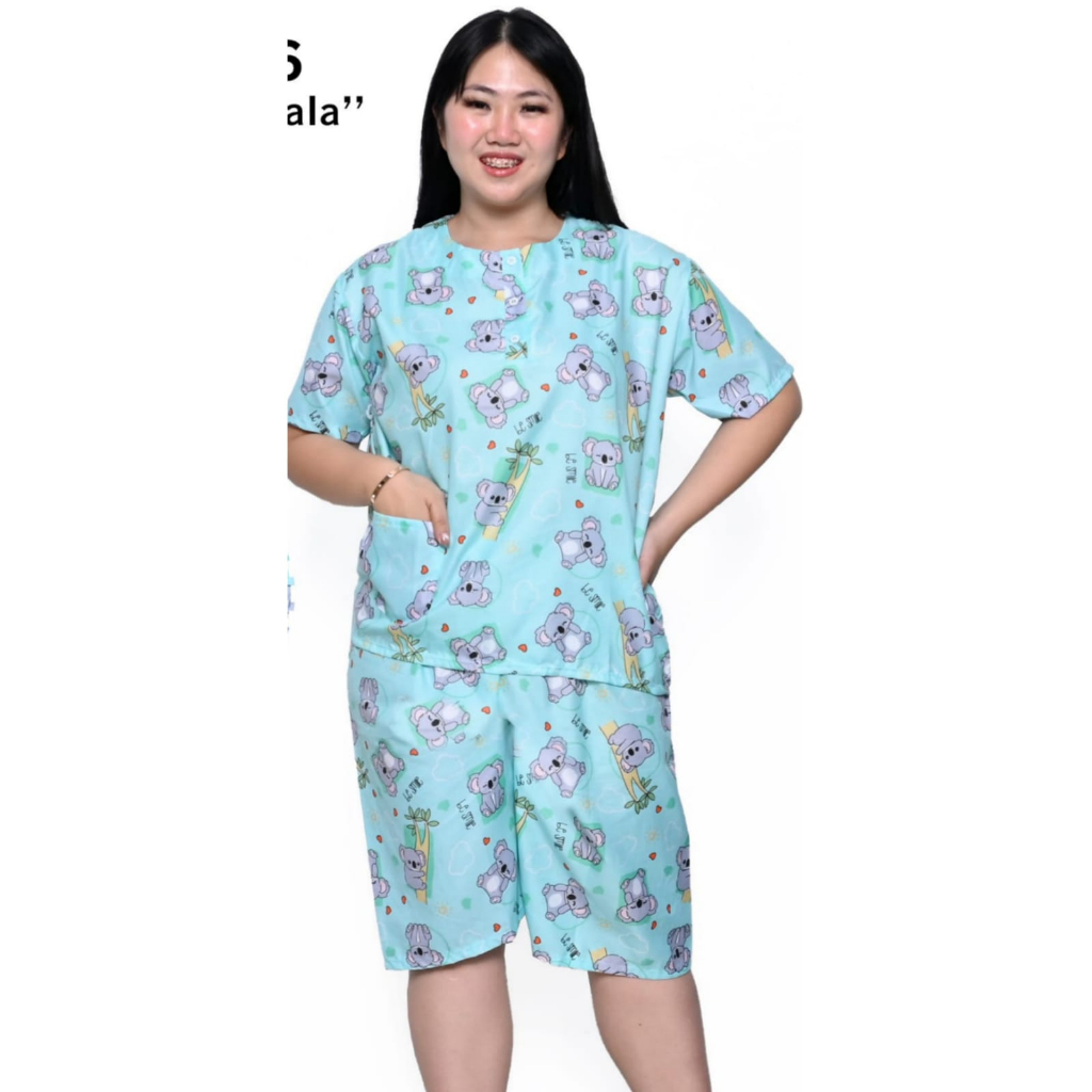 Detail Dtree . Piyama stelan pendek jumbo motif koala baju tidur kancing depan Ld 120 cm