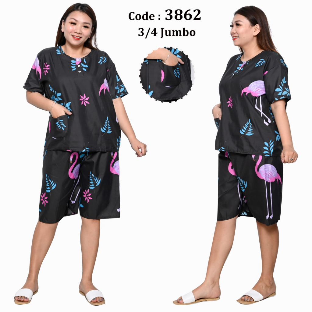 • KET : 3/4 JUMBO • Lingkar dada : 120 cm • Panjang celana : 60 cm • Panjang baju : 65 cm • Lingkar pinggang :110-120 cm • Bahan katun Eropa