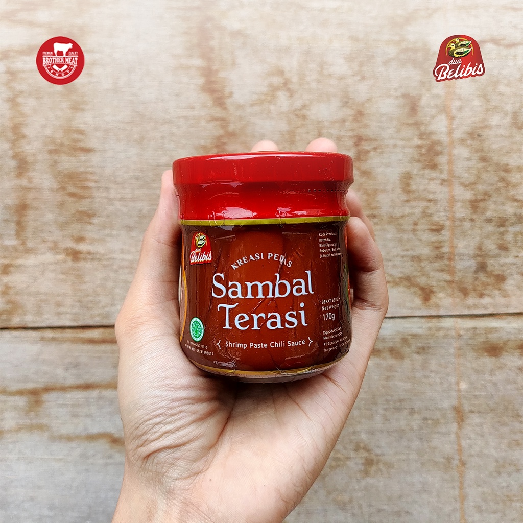 INFORMASI PRODUK: Sambal Terasi Cap Dua Belibis [JAR 170gr]. Kreasi pedas sambal terasi Dua Belibis dibuat dari cabe asli pilihan dan terasi berkualitas, diolah dengan teknologi moderen dan bahan-bahan premium lainnya. Mempunyai cita rasa yang khas dan gurih, sehingga membuat moment makan menjadi lebih istimewa. - Jenis Produk: Saus/Sambal Terasi - Merek: Dua Belibis - Variasi Kemasan: Jar 170gr - Jenis Penyimpanan : Ruangan Ber-AC - Sertifikasi : Halal Terverifikasi MUI.