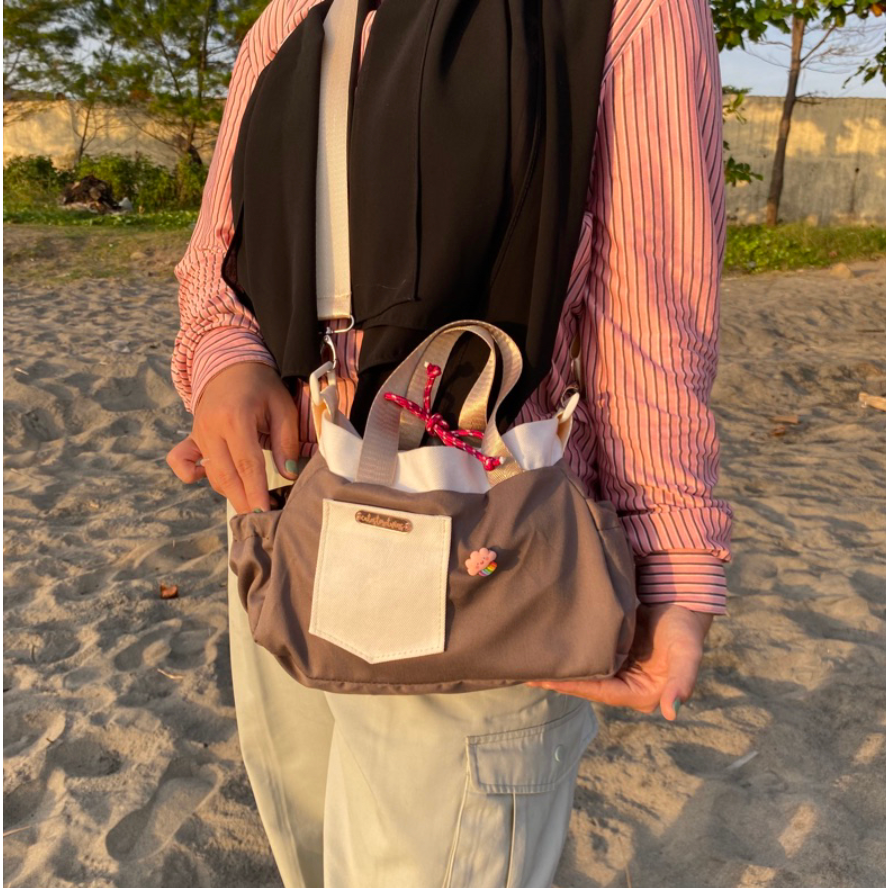 [detail👇🏼] •ukuran : 28x18x10cm (pxlxt) •penutup menggunakan tali paracord serut •saku kiri dan kanan, saku resleting bagian belakang, saku depan •bahan : canvas drill • tali jinjing 30cm • include key chain random & bordir 3D kupu-kupu • ++tali panjang 15K;uk 120cm bisa di adjust (pesan terpisah)