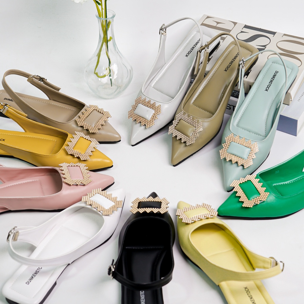 Sepatu Wanita > Sandal > Sandal Flat > DUNKENSTOCK TIPE KATYA Sepatu flat wanita casual warna kombinasi kerja flatshoes cewek ballerina ujung lancip terbaru kekinian