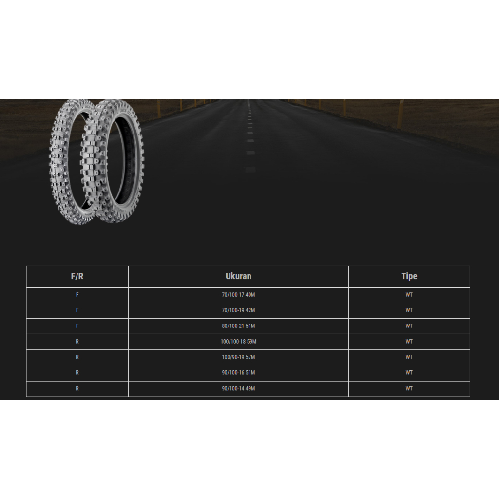 Ban terbaru yang kompetitif didesain khusus untuk penggemar grasstrack dan adventure yang bisa diaplikasikan di pilihan medan jalan yang lebih luas.