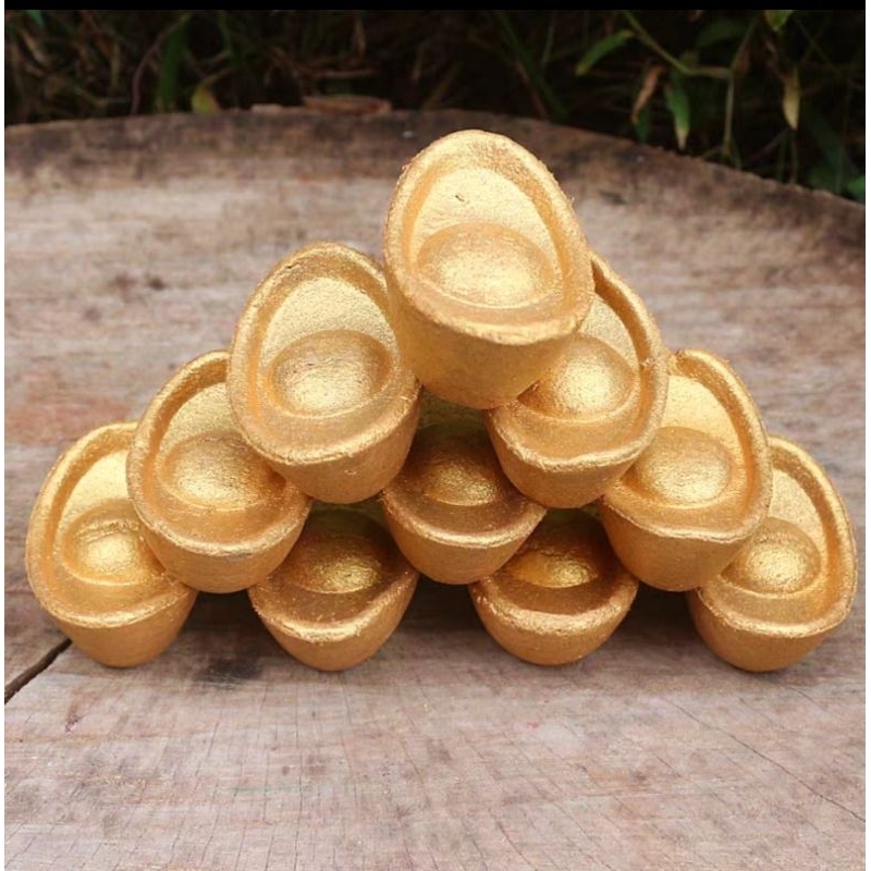 dupa bakar bentuk yenpau emas..aroma cendana.uk dupa +/- panjg 4 x lebar 2,5 cm x tinggi 2cm.dupa setelah di bakar habis,abu dupa tetap berwarna emas. 1 kotak dupa isi 12 pcs.
