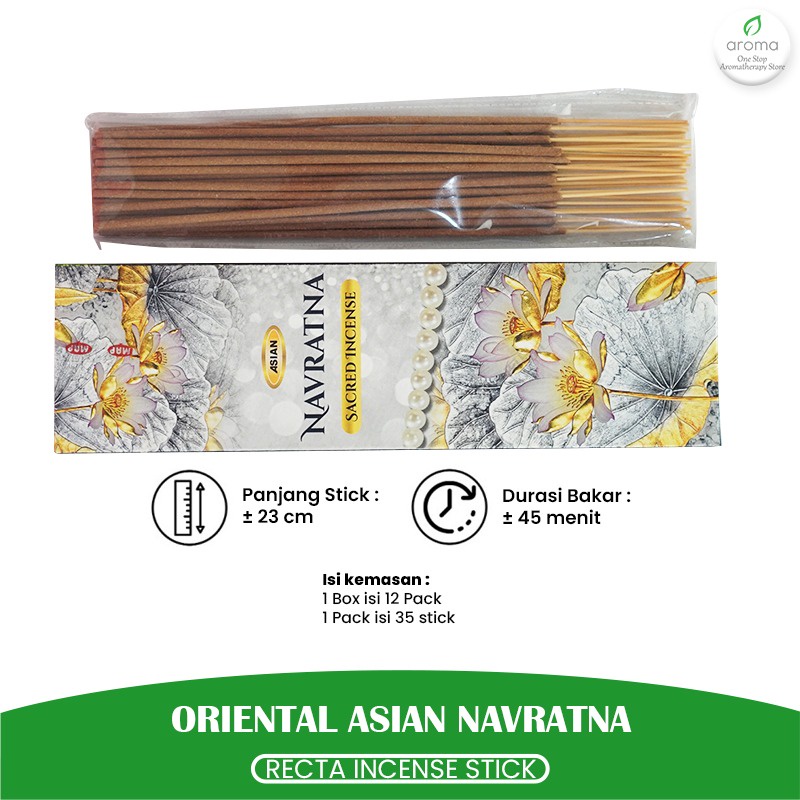 Incense dalam kemasan recta ini merupakan incense yang dibuat dengan menggunakan bahan-bahan herbal untuk menciptakan aromanya. Tanpa zat tambahan apapun, sehingga menjadikan keharumannya sangat unik dan kualitas aromanya yang tahan lama.
