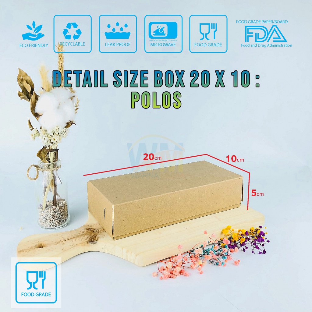 Box Polos Kraft Size 20x10x5cm - Dus Brownies Full Laminasi Dalam Food Grade - Eco Friendly - Kotak Box Take Away - Tahan Cairan Dan Aman Untuk Makanan.