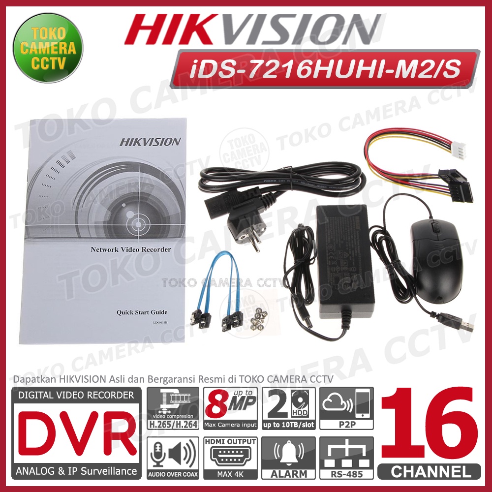 Isi Kemasan : -1 unit DVR HIKVISION -1 unit Adaptor -1 unit Mouse -1 Manual book -2 pcs kabel SATA -1 pcs kabel power