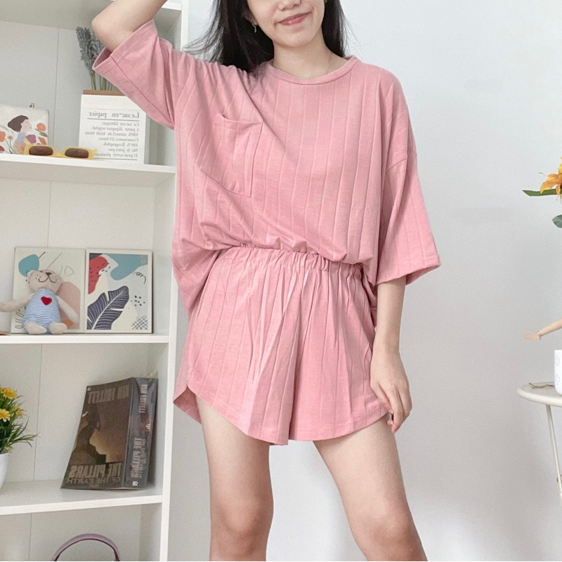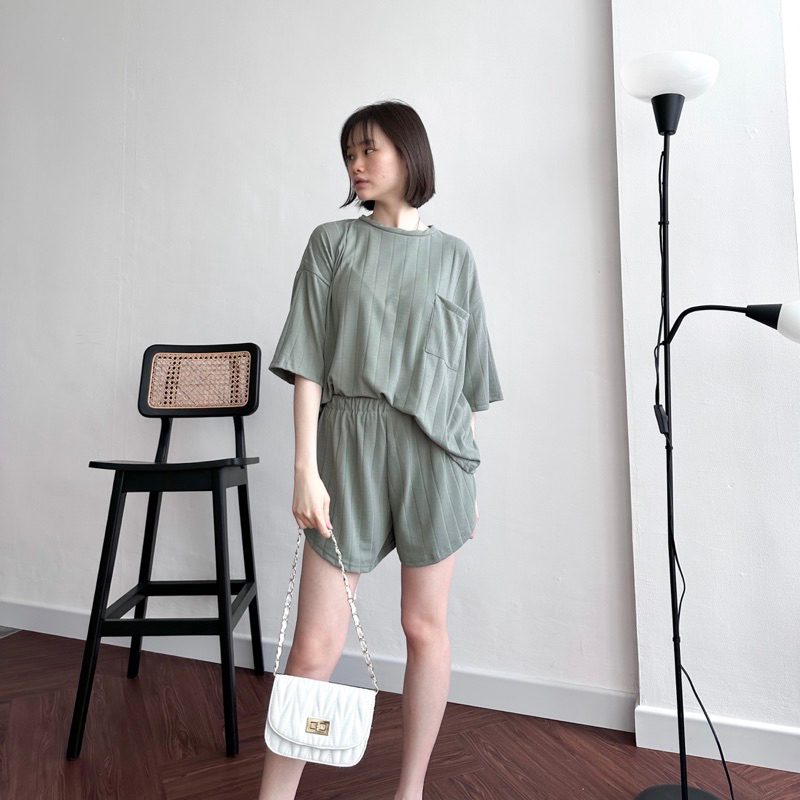 Dylan Comfy One Set Rp.89.000 Available in Color 1. Dark Blue 2. Sage Green 3. Brown 4. Peach