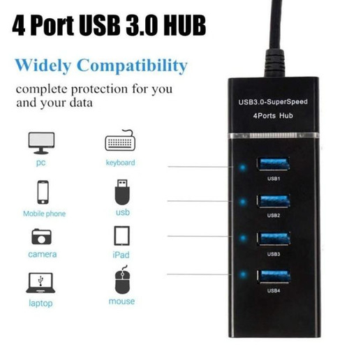 Deskripsi Produk 1.USB HUB 3.0 4 Port super speed 5Gbps with Led panjang kabel 30CM/1.2M Warna hanya hitam sesuai gambar Spesifikasi : * with 4 usb 3.0 port with super speed 5 Gbps * with Led indication * with slim size * with fuse to perfect all devicesk * compliant with usb revision 2.0 * Led Blue power * maximum data transfer : usb 3.0 5Gbps * driver support ; windows 2k/XP/ Vista/ win 7 / win 8/ win 10 / linux.MAC OS 10.0+