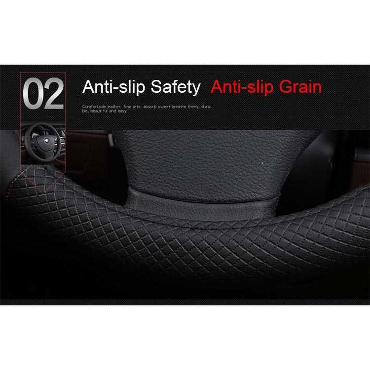 Bahan Kulit Sintetis Berkualitas Dengan bahan kulit PU, cover setir ini sangat nyaman untuk digenggam.Permukaan cover yang lembut dan terdapat tekstur rhomboids, membuat Anda menyetir lebih solid dan nyaman.