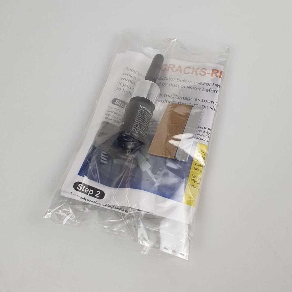 Mudah Digunakan Cara menggunakan alat ini sangat mudah. Pertama, bersihkan kaca dari debu, pasangkan stiker penahan cairan dan tempelkan pedestal, lalu tuangkan cairan resin dengan cara menyuntikkan ke dalam pedestal, diamkan selama 15 menit lalu bersihkan kaca. Anda dapat melihat langsung hasilnya kaca nampak kembali seperti semula.