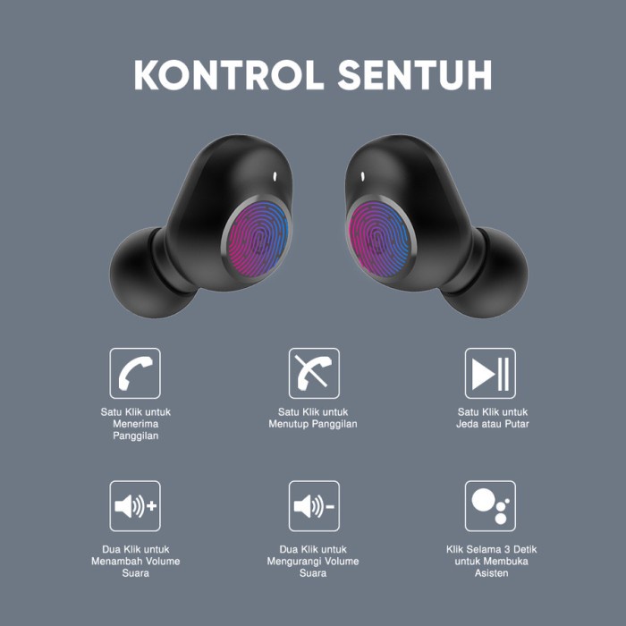 Spesifikasi: - Versi Bluetooth: v5.1 - Jarak Efektif Nirkabel : 10 meter - Driver Size : 8mm - Sensitivitas Driver @ 1kHz/1mW (dB): 96 ± 3 - Rentang Respons Frekuensi Dinamis : 20Hz - 20000 kHz - Impedansi : 32 ± 15% - Jumlah Driver untuk Setiap Sisi : 1 Driver - Jumlah Mikrofon : 2 x MEMS - Profil Bluetooth : HSP / HFP / A2DP / AVRCP
