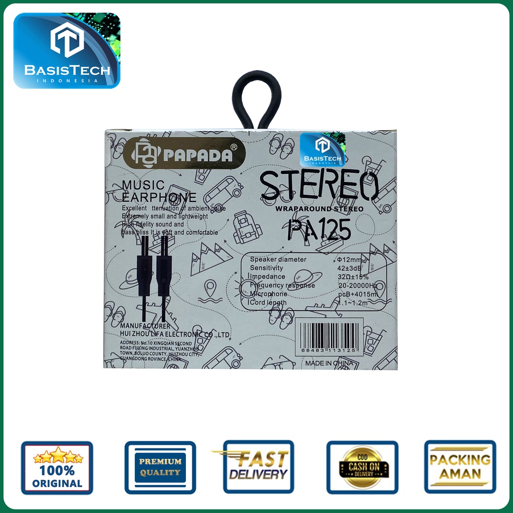 EARPHONE HEADSET WRAPAROUND STEREO HIGH BASS PAPADA PA125