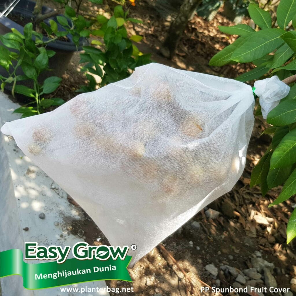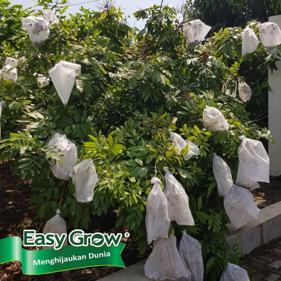 Fruit Cover EASY GROW diproduksi dari bahan PP Non Woven anti UV, akan mempercepat dan memperbaiki pertumbuhan buah dan tanaman serta meningkatkan hasil panen. Melindungi tanaman sayur, strawberry, berbagai macam buah, dan tanaman dari cuaca dingin yang extreme, air hujan, panas, ataupun kerusakan akibat serangga, pestisida, burung, debu, dan sinar UV matahari.