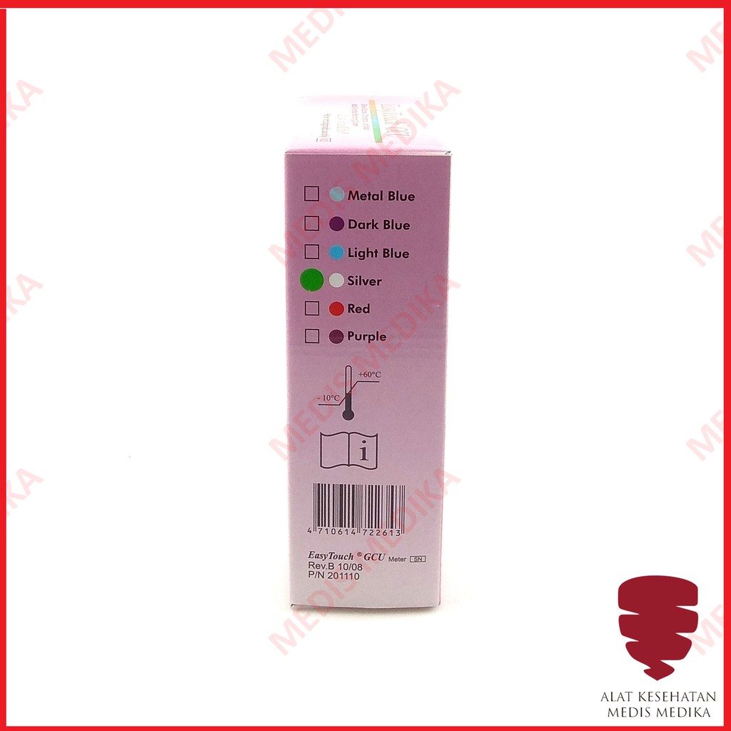 Dalam satu set alat test darah EasyTouch GCU ini meliputi : - 1 buah alat test darah EasyTouch - 10 buah strip pengecekan gula darah - 10 buah strip pengecekan asam urat - 2 buah strip pengecekan kolesterol - Tas alat - Lancing device - 20 buah Jarum lancet - 2 buah baterai AAA - Buku cara penggunaan