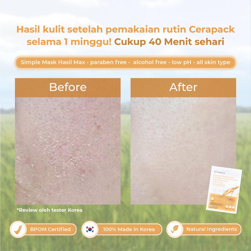 Cerapack merupakan masker yang memperbaiki skin barrier dan sudah disertifikasi bpom. Menyehatkan setiap lapisan kulit dengan kandungan yang ada di dalam serum, serta kandungannya yang low pH sehingga cocok untuk semua kulit.