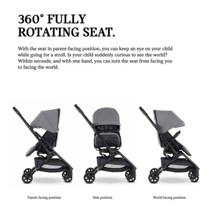 Easywalker Mini Buggy Turn Tersedia dalam warna : - Oxford Black - Manchester Green - Kensington Grey - Soho Grey Fitur : - Memiliki berat bersih stroller 8kg - Dapat digunakan untuk newborn baby hingga 22kg - Kursi stroller yang dapat berputar 360 derajat dan juga dapat dilepas sehingga memudahkan untuk perubahan posisi hadapan baby untuk menghadap ke depan maupun ke pendorong - Dilengkapi dengan fitur Automatic Folding sehingga mudah untuk dilipat dan Self Standing sehingga stroller dalam posisi berdiri pada saat dilipat - Dilengkapi dengan tas stroller - Sandaran kursi yang dapat ditidurkan hingga 170 derajat - Kanopi yang dilengkapi dengan UPF 50+ dan dilengkapi dengan jendela ventilasi - Dilengkapi dengan rain cover - Dilengkapi dengan suspensi pada ke empat roda.