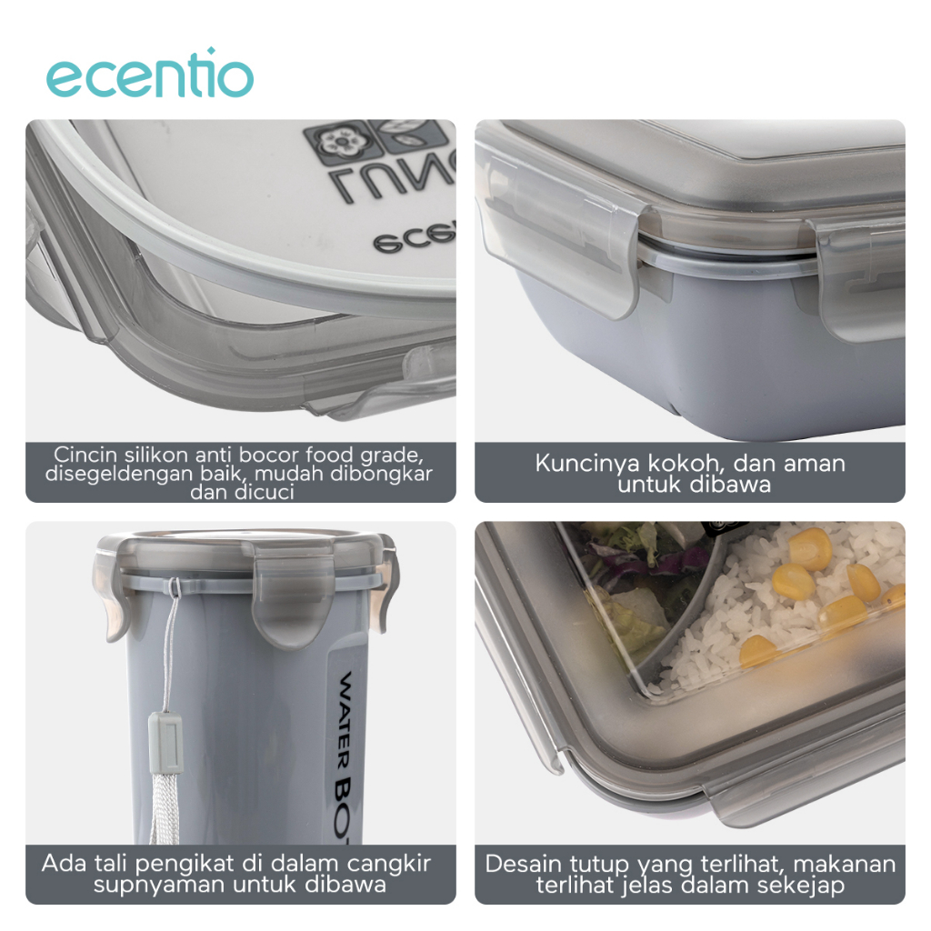 Detail ecentio 1100ml Lunch Box set /Kotak makan /Lunch box set + botol minum /tempat makan set
