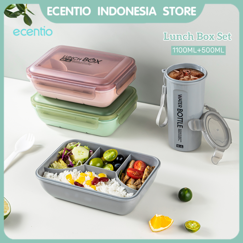 Perlengkapan Rumah > Peralatan Dapur > Tempat Penyimpanan Makanan > ecentio 1100ml Lunch Box set /Kotak makan /Lunch box set + botol minum /tempat makan set