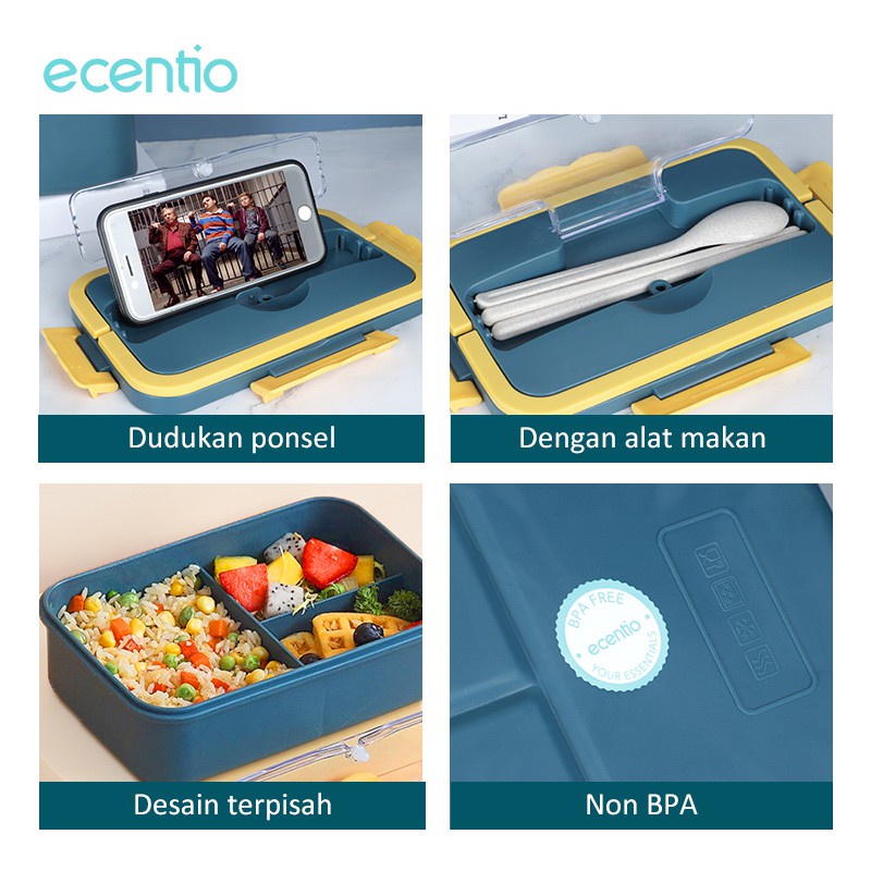 Video perkenalan produk ecentio 1500 ml Kotak Makan Portable lunch box 3 Sekat kotak bekal Gratis Sendok Sumpit BPA Free. Sumber: Shopee.