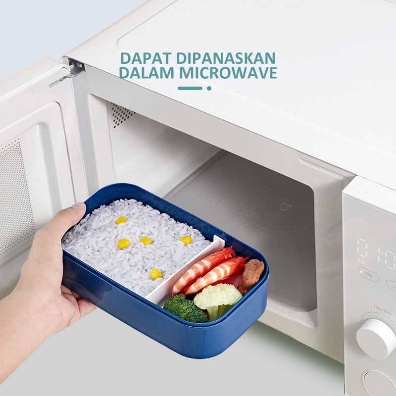 Bahan : PP (Aman untuk makanan & minuman) Warana: Biru/Dark Biru Lapisan : 2 tingkat Product size: 22*12*11cm Packing list: lunch box*1PCS; spoon*1PCS; chopsticks*2PCS Can it be put in a microwave oven: Yes, put the lid in the microwave oven to heat up The temperature range of the lunch box: -20-100 Remarks: BPA Free
