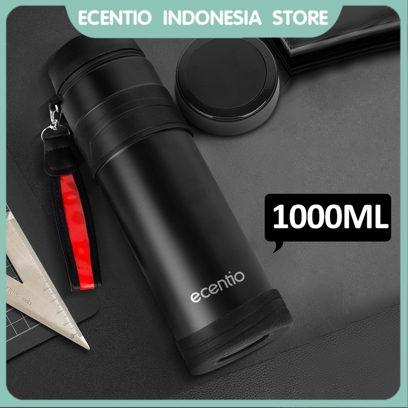 Detail ecentio 1L Termos Air Panas Dingin Tumbler Besar Bottle Air Panas Anti Bocor Stainless Termos Minum Botol Minum